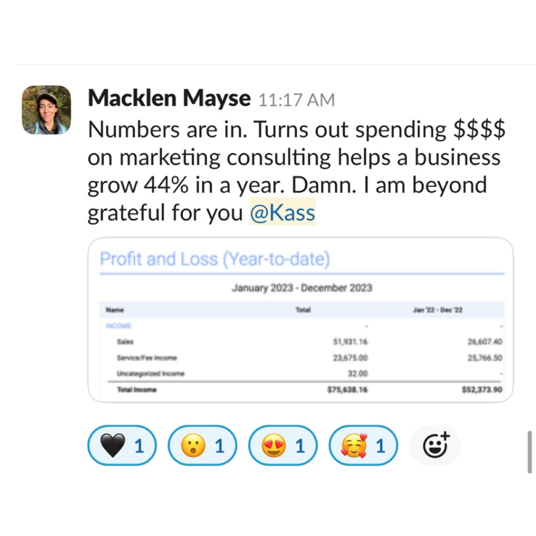 Yes. In addition to our weekly meetings, you'll also get access to my private Slack channel. This is where you'll submit posts & emails you want edited. Ask questions that come up in-between our calls. Connect with other business owners, and more.